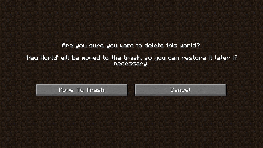 Delete Worlds To Trash - данный мод позволяет при удалении мира Minecraft перемещать его в корзину для мусора, а не уничтожать. Дает вам возможность пересмотреть свое решение, и, в конце концов, вы никогда не знаете, когда это может пригодиться позже.