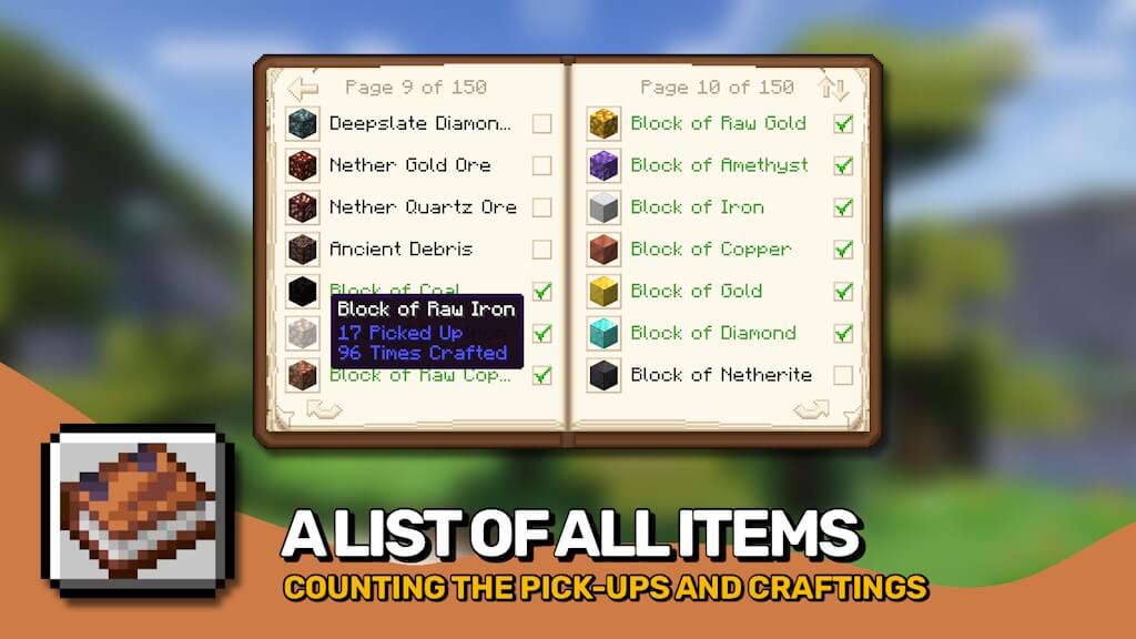 Completionist's Index - данный мод добавляет небольшой список всех предметов, которые вы уже собрали в своем мире. Отсортированный по различным модам, вы можете тщательно проверять, постепенно собирая каждый предмет в игре, становясь настоящим мастером накопления. Положение кнопки и черный список доступны в конфигурации.