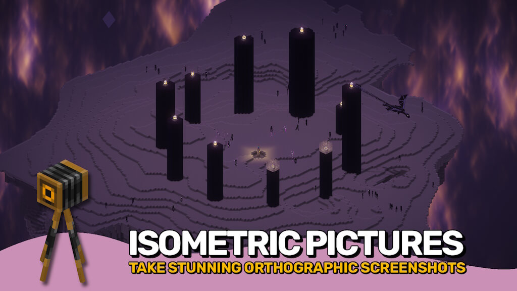 Pixelshot - данный мод привносит в Minecraft мощные инструменты для работы с камерами, позволяя легко запечатлеть ваш мир новыми удивительными способами. Он оснащен регулируемой ортогональной камерой для плавного изометрического обзора, режимом скриншотов с высоким разрешением для получения сверхчистых изображений до 16К и панорамной съемкой для создания полного 360-градусного фона для экрана главного меню.