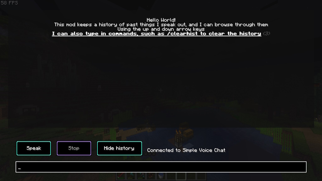 Text to Voice - данный мод является дополнением для Simple Voice Chat, которое позволяет людям, которые не могут или не хотят использовать свой микрофон, общаться другим способом - с помощью преобразования текста в речь.