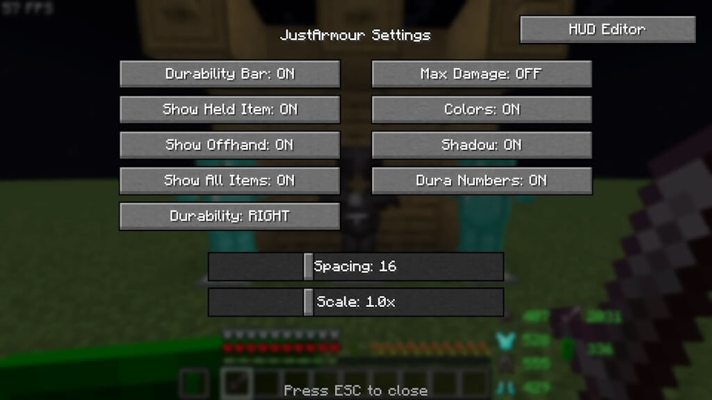 JustArmourHud - данный мод отображает насколько прочна ваша броня, благодаря полностью настраиваемым цветовым кодировкам - Позиционирование с помощью перетаскивания, настраиваемый масштаб, интервалы и цвета - Отслеживайте все свое снаряжение в одном месте.