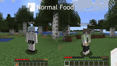 Let Your Friend Eating! - данный мод добавляет простую, но забавную механику: Вы можете кормить других игроков напрямую, щелкая по ним правой кнопкой мыши, удерживая еду в руке. Цель мгновенно съедает предмет и получает все связанные с этим ощущения голода, насыщения, эффекты и звуки.