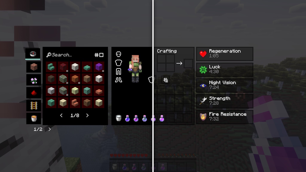 Translucency Fix - данный мод исправляет поддержку прозрачности графического интерфейса и HUD в Minecraft, что позволяет корректно использовать наборы ресурсов, где есть прозрачные стили HUD.