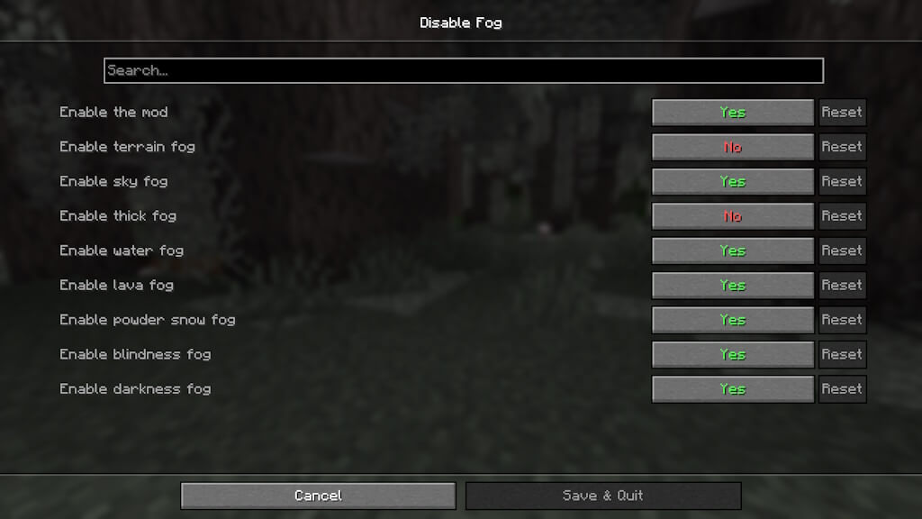 Disable Fog - данный мод позволяет вам выборочно отключать определенные типы тумана в minecraft.