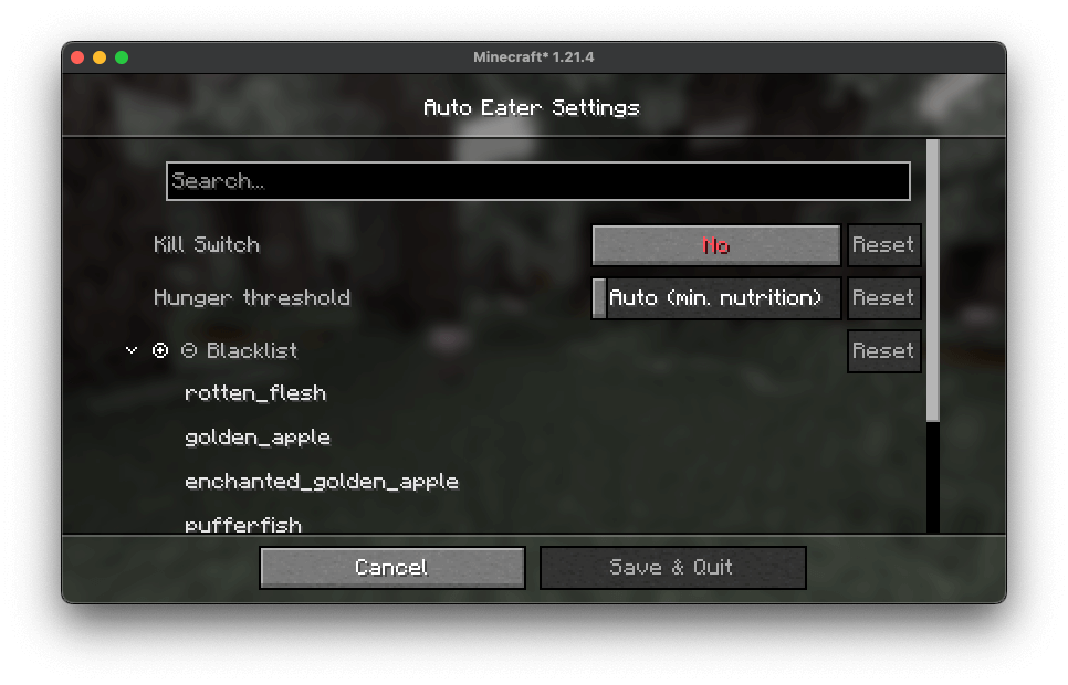 Ключевой особенностью мода является функциональность черного списка. Это позволяет вам указать определенные продукты питания, которые вы хотите, чтобы мод игнорировал. Например, если у вас есть редкие или ценные продукты, которые вы хотели бы сохранить на случай непредвиденных обстоятельств, или вредные продукты, которые вы не хотите есть, вы можете добавить их в черный список. Мод отключит эти продукты при автоматическом потреблении.