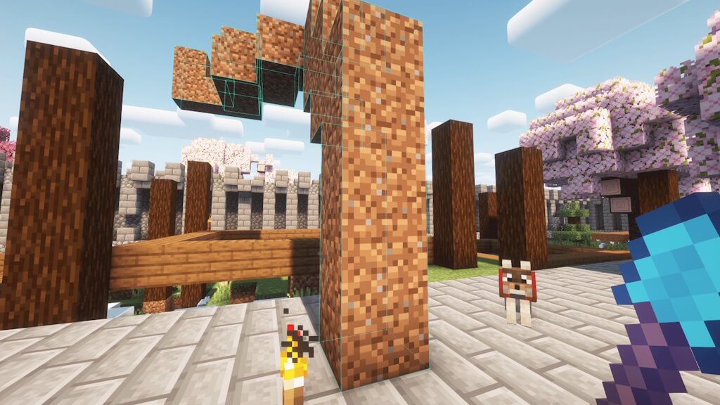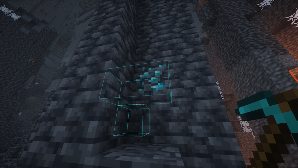 Удерживая клавишу Тильда (~), посмотрите на блок и добудьте его. Контуры должны показывать, что вы собираетесь добыть.